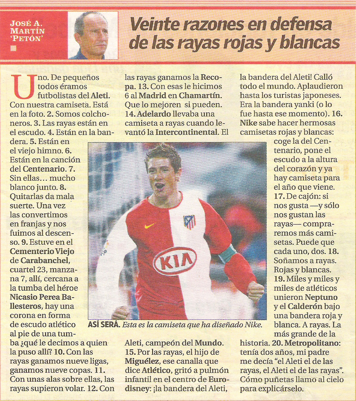 Veinte razones en defensa de las rayas rojas y blancasDiario AS - José A. Martín "Petón" |